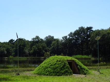 Eerst naar ‘De Nieuwe Kolk’ in Assen voor een reisgids (duur, maar onmisbaar), een routekaart (ook leuk voor het verzamelen van de stempels) en de jachthutten van Mark Dion. Omdat we al op vijf locaties waren geweest, werden deze – zonder erom te hoeven vragen – door een vriendelijke mevrouw op de routekaart afgestempeld.