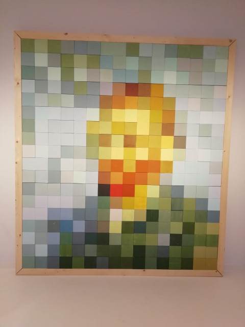 - (“Kijk even goed door je oogharen.”) Leerlingen van ‘CS Vincent van Gogh’ in Assen hebben een Vincent gemaakt van 288 gekleurde stukjes hout: een abstract kunstwerk. Prachtig gemaakt. Het prachtige werk heeft een formaat van 2.60 x 2.40 meter en heeft een plaats gekregen in het Drents Museum. Heel eervol.