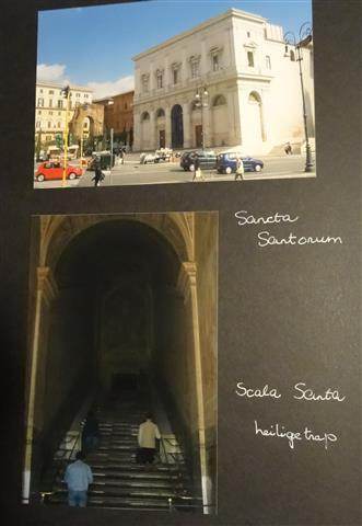 In de oude stad Rome volgden wij de route in het boek van Mulisch. Toen we in buurt kwamen van Sancta Sanctorum zagen we op het plein de ‘campingburen’ op een bank zitten. Zij hadden een drinkflesje bij zich, waarin geen water zat maar wijn, vertelden zij met een grijns. De man rookte zijn dagelijkse sigaartje en wees naar het gebouw dat naast het plein stond. “Daar moeten jullie zijn.” We namen afscheid en liepen naar de ingang van het gebouw.