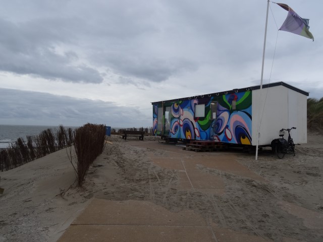 Het grafische werk (houtsneden) van Henk Schouman was hier, vlakbij het strand, te bewonderen. (Hij was er zelf ook !!!)