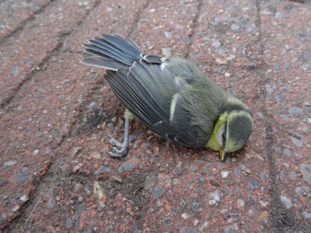 Misschien heeft het vogeltje (een pimpelmees volgens mij) nog geen dag geleefd.