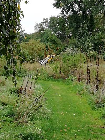 Een (kunst)wesp en een (kunst)hond Geplaatst op 11.10.2020 door Martien Op de zorgtuinderij ‘Het Nieuwe Veld’ in Diepenveen te zien.