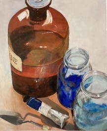 Apothekersfles Gepubliceerd 20.01.2026 op 217 × 266 in Mijn nieuwste drie schilderoefeningen Apothekersfles – 23×20,5cm (t.k.)