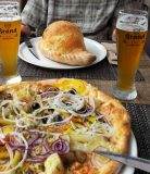 – Verder ging de ‘tocht’, over het fietspad, dwars door het mooie natuurgebied, naar het Bankenbos (bij Veenhuizen) en langs het Kolonieveld. Via ‘Meesterwijk’ kwamen we in Bovensmilde. Vandaar fietsten we naar het centrum van Assen voor een echte Italiaanse pizza (piedzaa) en een passend drankje. Mijn vrouw koos een vegetarische pizza en ik een ‘Calzone’ (de dubbelgevouwen pizza ziet er goed uit, niet waar?).