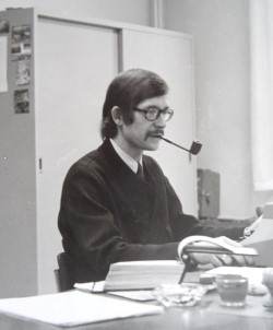Blogger met pijp aan het werk