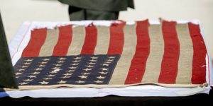 D-Day, het meest vreselijke en verschrikkelijke moment uit WO II op de stranden van Normandië (Frankrijk). Het begin van de bevrijding. Het is de bedoeling dat deze Amerikaanse vlag aan Trump zal worden overhandigd, maar dan moet hij de vlag wel zelf komen ophalen!