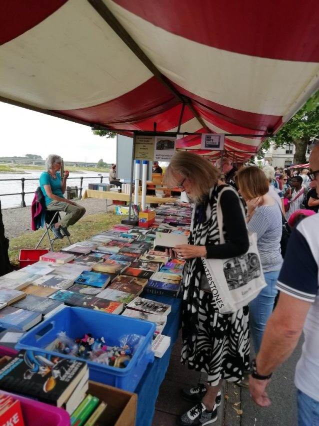 Morgen gaan we naar de Deventer Boekenmarkt. De grootste van Europa, las ik, met bijna 900 boekenkramen, op plaatsen langs de IJsselkade en in de historische binnenstad. Ruim zes kilometer boekenmarkt. ( www.deventerboekenmarkt.nl )