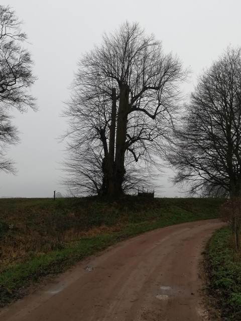 Verder maar weer. Terug over het smalle, bochtige landweggetje. We moesten een paar keer de berm in, dus van de fiets af, omdat ons een paar kolossale trekkers met een brede ‘aanhanger’ tegemoet kwamen rijden.