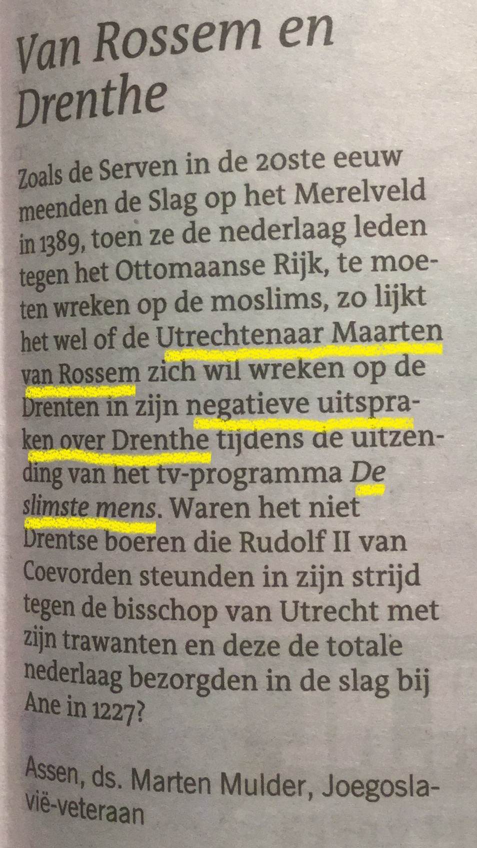 De denigrerende woorden van Maarten van Rossem over de provincie Drenthe in een uitzending van ‘De Slimste Mens’ waren erg en heel negatief. Wat denkt hij wel wie hij is?