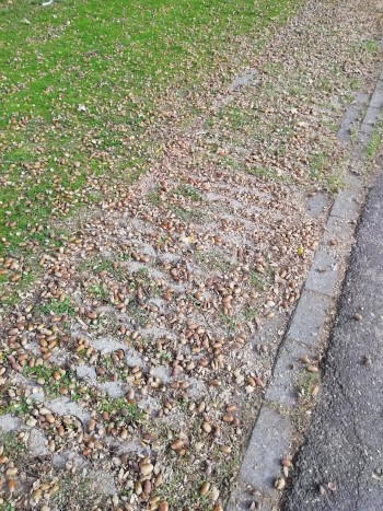 Eikels, eikels, en nog eens eikels. Je ziet overal heel veel eikels liggen. Het valt gewoon op!