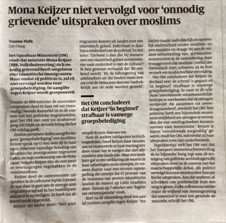 Daarin is o.m. te lezen dat zij NIET wordt vervolgd door het OM (Openbaar Ministerie) voor ‘groepsbelediging‘. Misschien lijkt dat voor haar een opsteker, maar dat is het NIET.