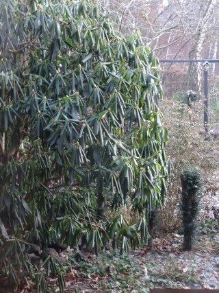 Vanmorgen, bij -6.6° C … Geplaatst op 14.12.2022 door Martien … waren de blaadjes van deze heester (rododendron) zo te zien. Dat zie je niet vaak meer. Toch? Maar de natuur redt zichzelf wel. Echt waar. Vanmorgen: vorst !!!