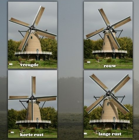 De stand van de wieken van de molen kan het volgende betekenen: